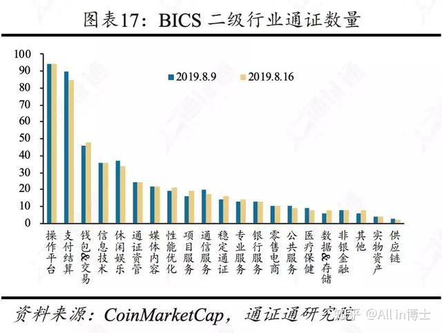 行情:反弹遇阻,回踩支撑。本周数字通证总市值为2707.4亿美元,相比上周下降344.2亿美元,跌幅为11.3%。日均成交量为568.7亿美元,较上周下降4.0%,日均换手率为20.2%。BTC现价10374.3美元,周跌幅为12.5%;日均成交量为182亿美元。ETH现价185.4美元,周跌幅为11.9%;日均成交量为67.8亿美元。本周交易所BTC余额为88.6万个,较上周增加4870个;ETH余额为919.3万个,较上周增加1万个。BICS二级行业中,支付结算市值与通证数量有所下降。